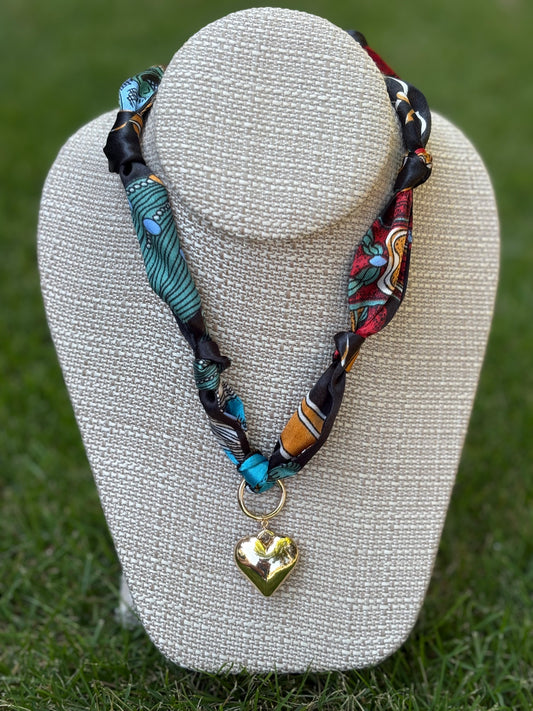 Colorful Scarf Heart Charm Necklace / 3 colors