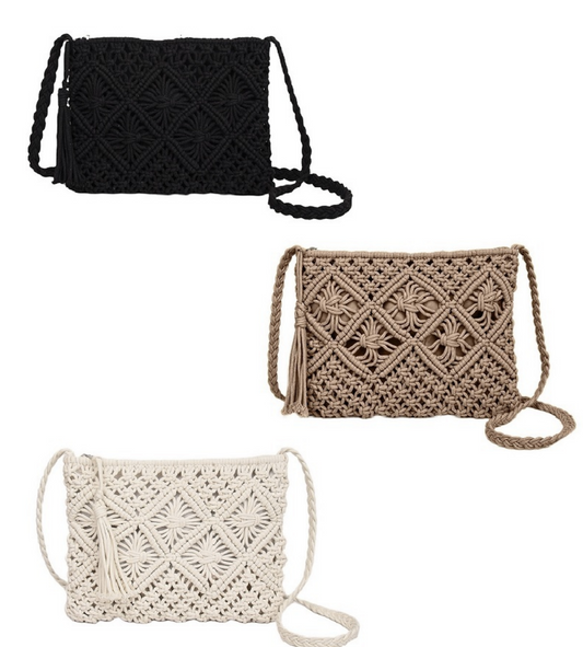 Hand Woven Bohemian Crochet Cross Body Purse / 3 colors