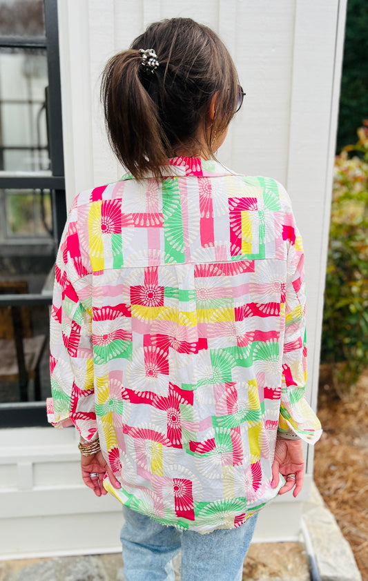 Printed Paisley Button Front Blouse