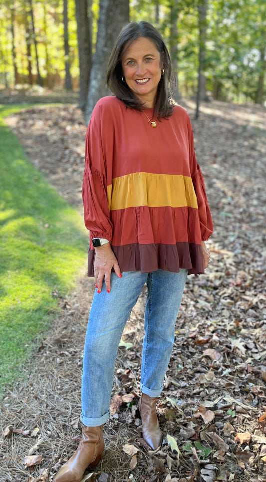 Pumpkin Spice Baby Doll Stripe Top