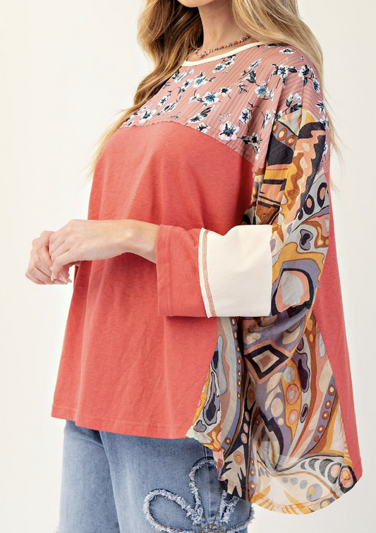 Print Mix Cotton Jersey Top