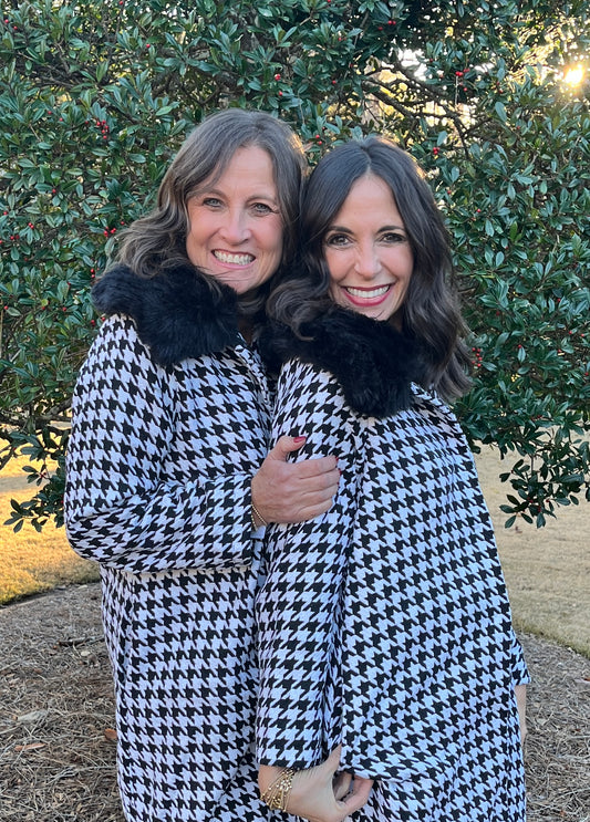 Riley Houndstooth Knee Length Coat