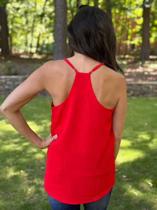 Red Adjustable Strap V Neck Cami Tank
