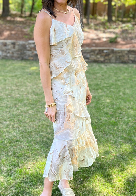 Ruffled Chiffon Marbled Maxi Dress