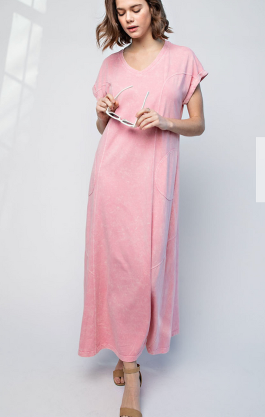 Washed Cotton V Neck Maxi Dress / 3 colors