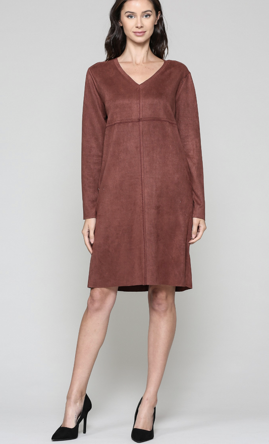 Aurora Suede Long Sleeve V NECK Dress NO POCKETS /6 colors