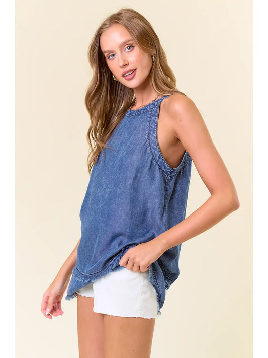 Criss Cross Strap Denim Top