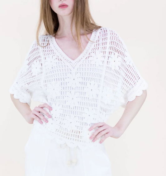 Beach Sunflower Crochet Batwing Top