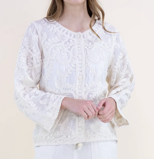 Natural Embroidered Detail Blouse