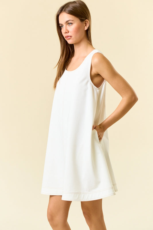 Double Scoop Neck Contrast Top Stitched Mini Dress / 2 colors