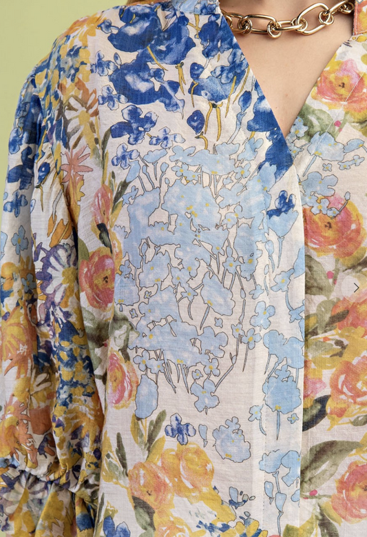 Burgundy Mix Floral Print V-Neck Shift Dress