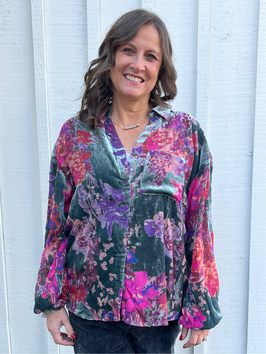 Fleece and ROSE Knit Mix Pattern Button Down Jacket