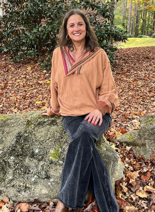 Chenille V Neck Long Sleeve Pullover / 3 colors