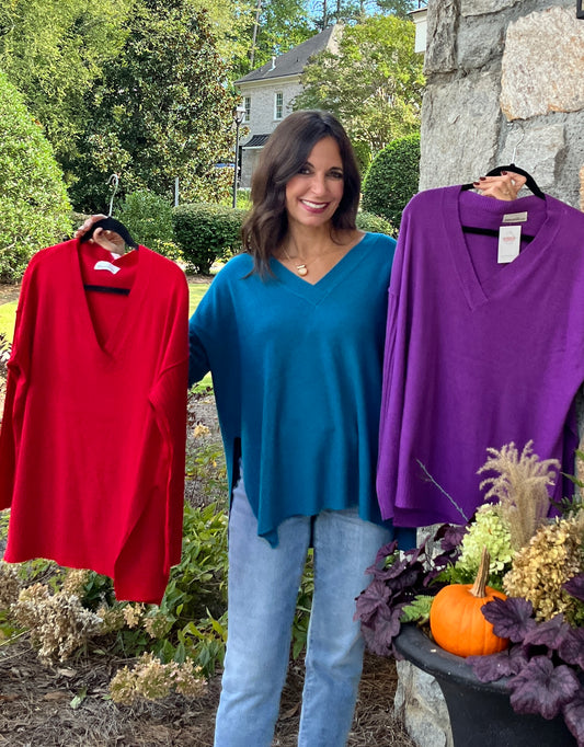 Chenille V Neck Long Sleeve Pullover / 3 colors