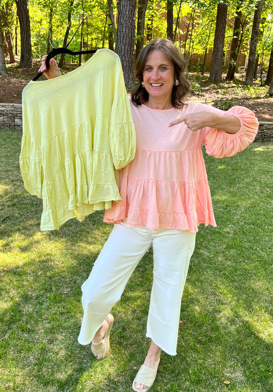 Easel Bubble Sleeve Tunic Top / 2 colors