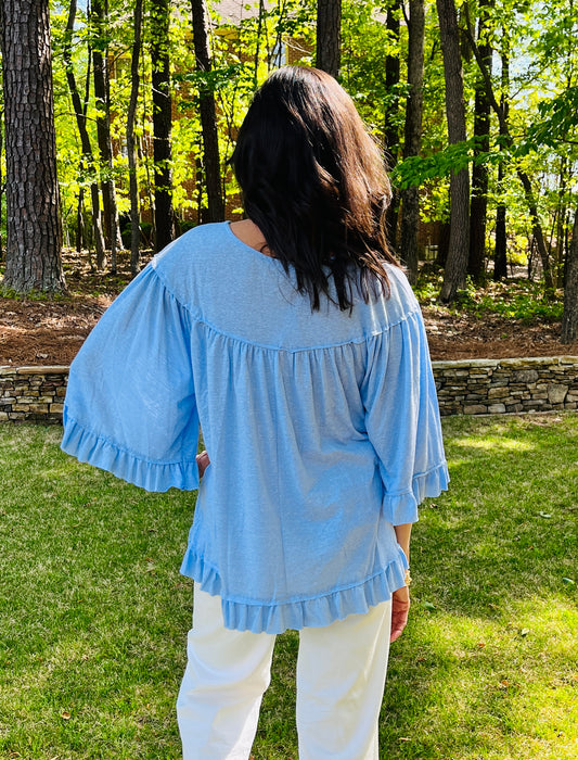 Easel Swing Ruffle Sleeve Top / 2 colors