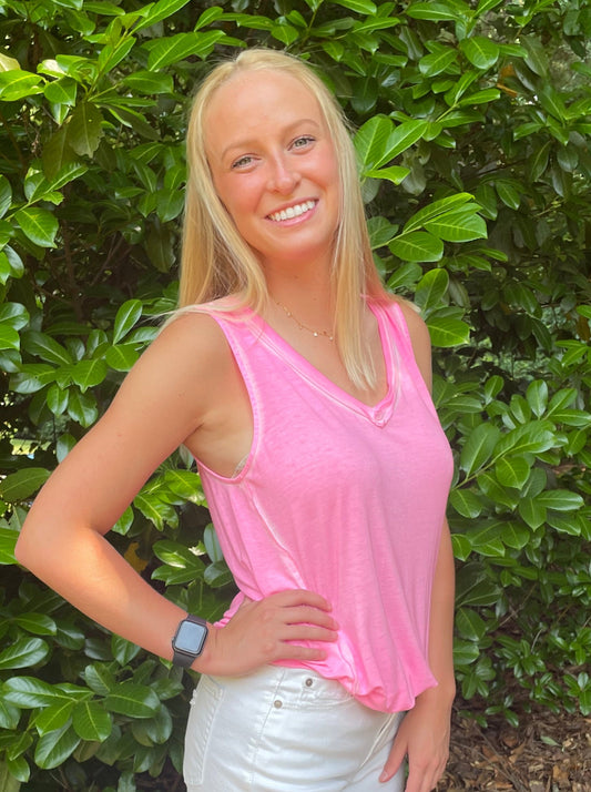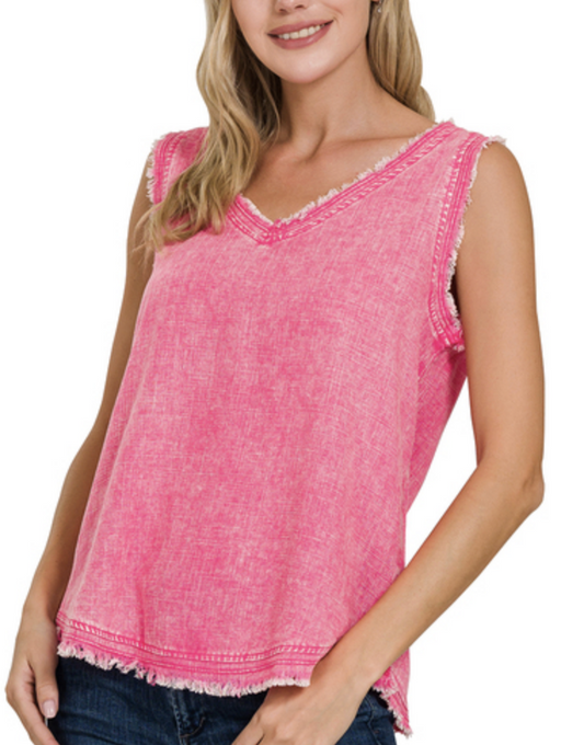 Washed Sleeveless V Neck Top - 2 colors