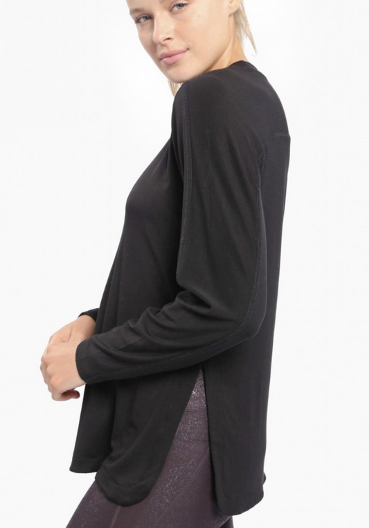 Black Tencel Long Sleeve with Curved Hem