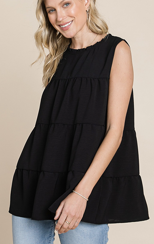 Air Flow Ruffle Neck Sleeveless Top /3 colors