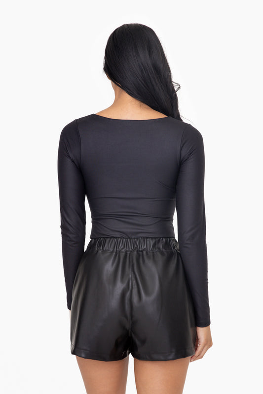 Black Long Sleeve Square Neck Body Suit