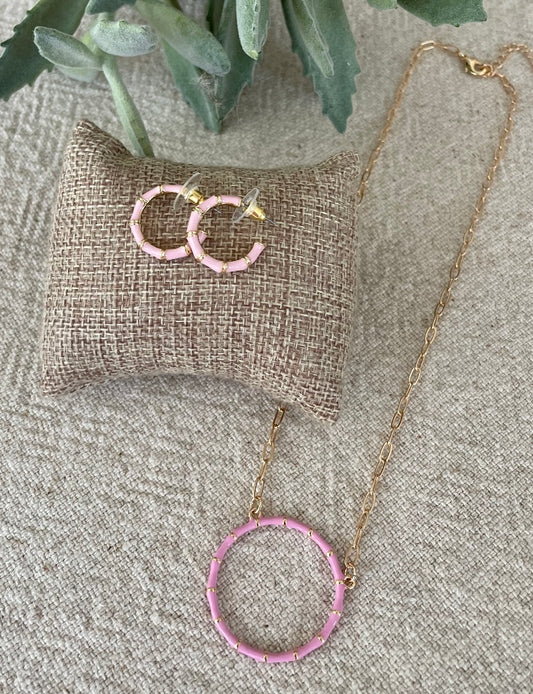 Light Pink Bamboo Circle Necklace