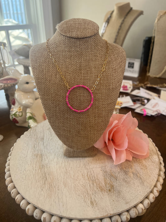 Hot Pink Bamboo Circle Necklace