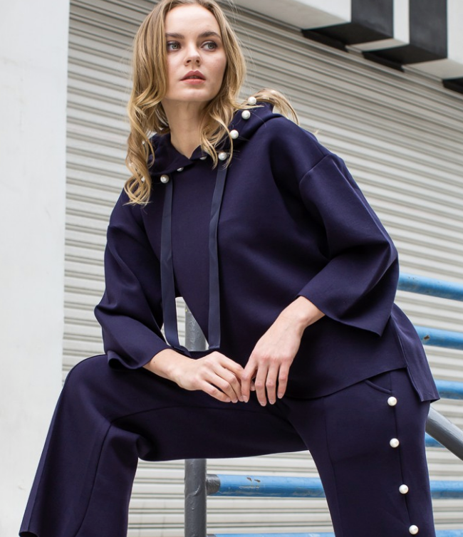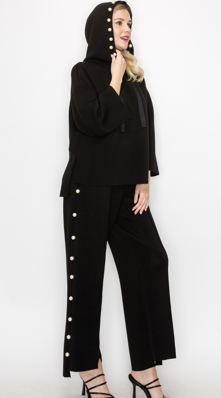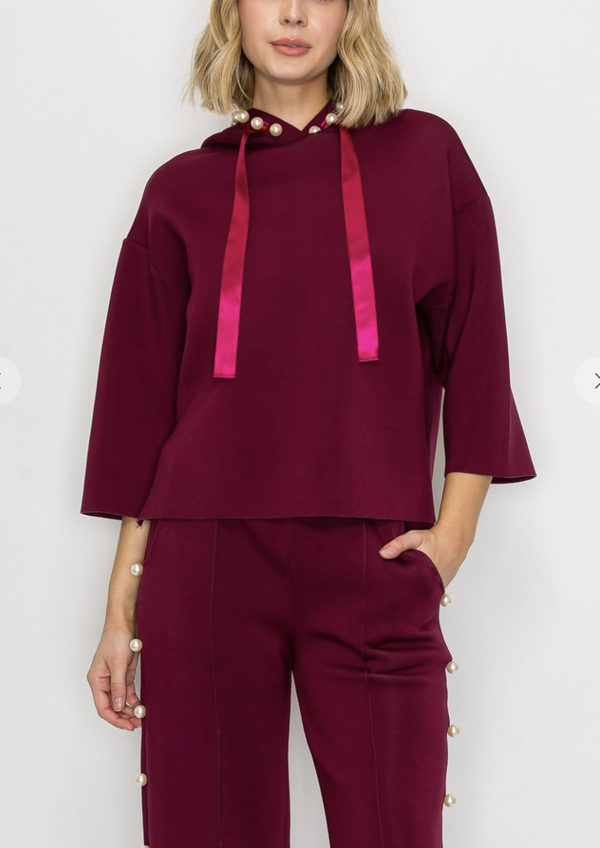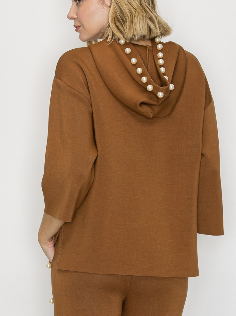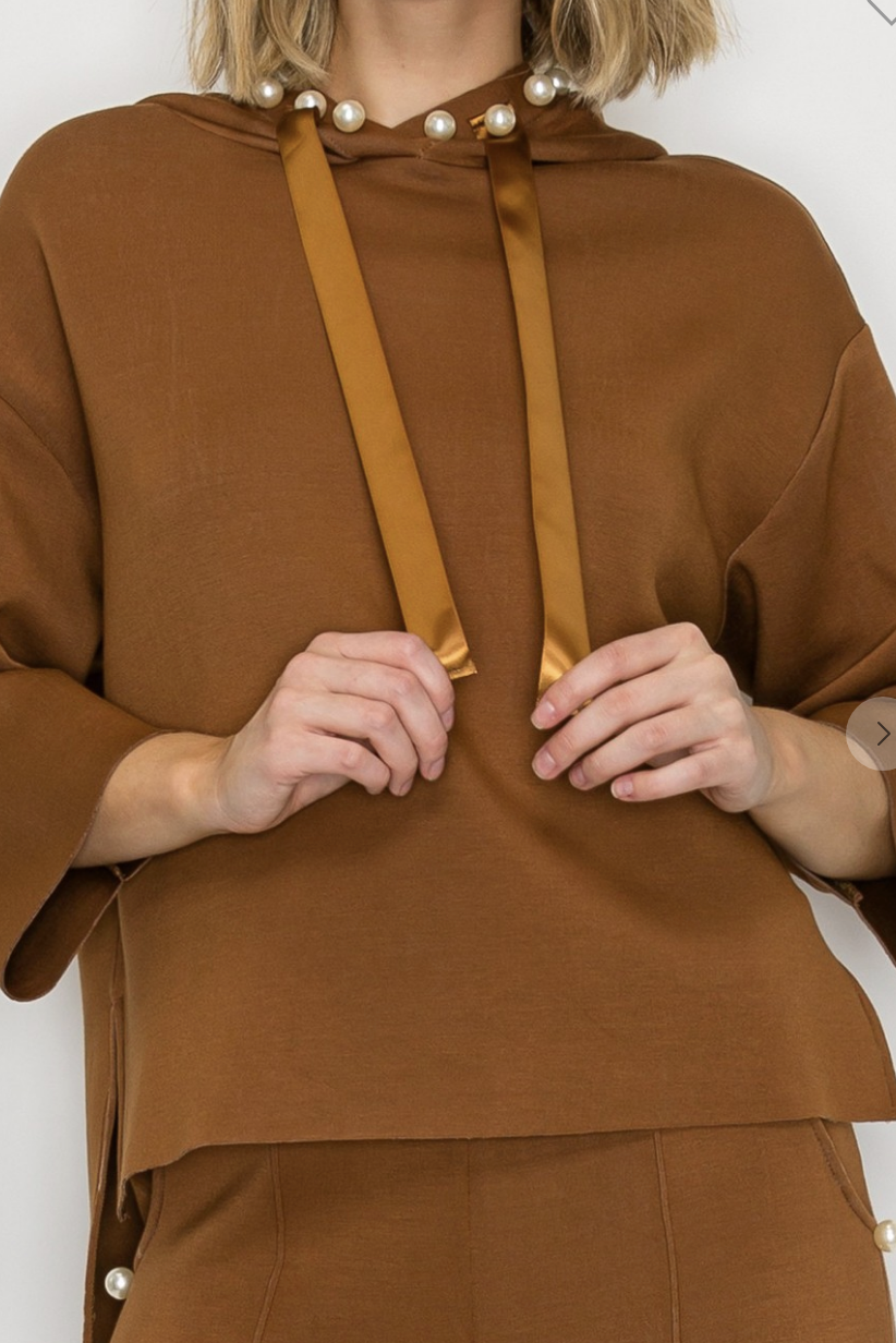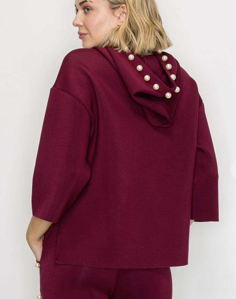 * Pearls around the hoodie. Long sleeves. Side slits.
