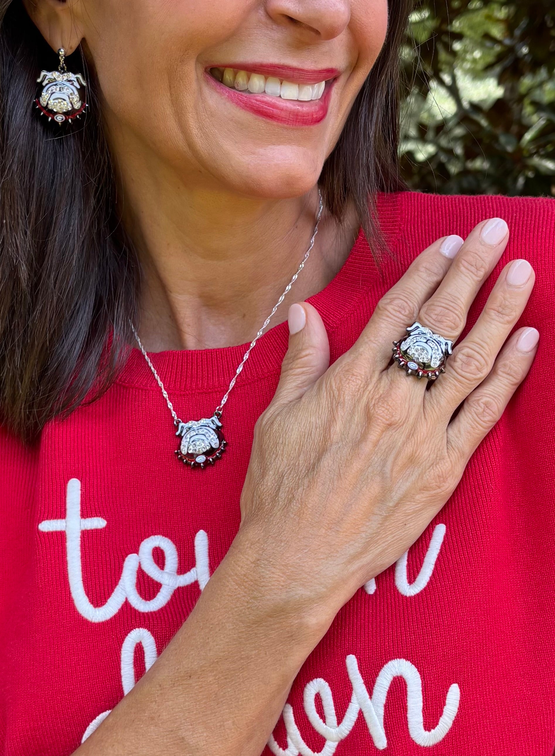 Georgia Bulldog Crystal Mascot Stretch Ring