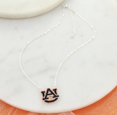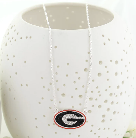 4. Imitation pearls (if applicable), unless otherwise stated. Keep your team spirit close to your heart with this chic Collegiate Logo Necklace. Featuring a sleek chain and a beautifully detailed team logo charm, this necklace is the perfect everyday piece for fans who love to rep their school in style. Whether you're dressing up for game day or adding a subtle touch of spirit to your everyday outfit, this versatile accessory is a must-have for any true fan. Lightweight, polished, and full of pride — it’s the finishing touch to every spirited look.