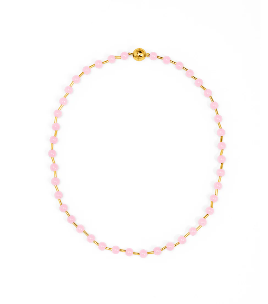 A timeless pop of color with effortless versatility, the Glass Bead Magnet Short Necklace features glossy glass beads accented with polished gold spacers for a refined, luminous finish. Designed with an easy magnetic closure, this piece can be worn alone for a classic look or connected to the matching bracelet to create added length and layered color combinations.