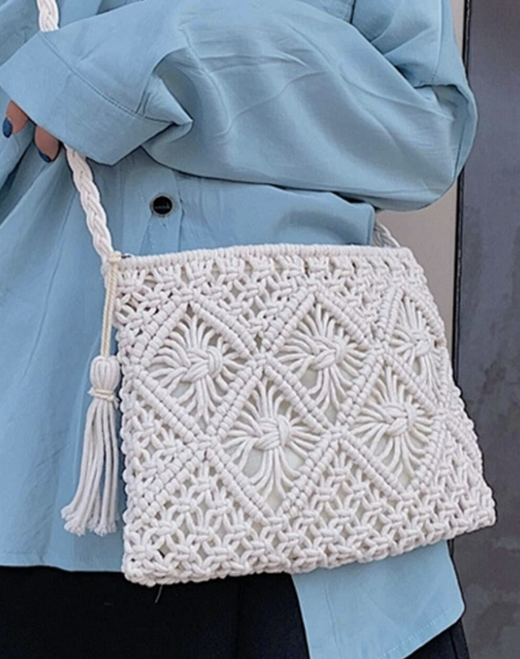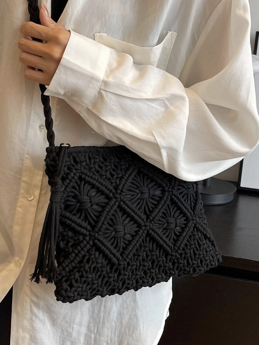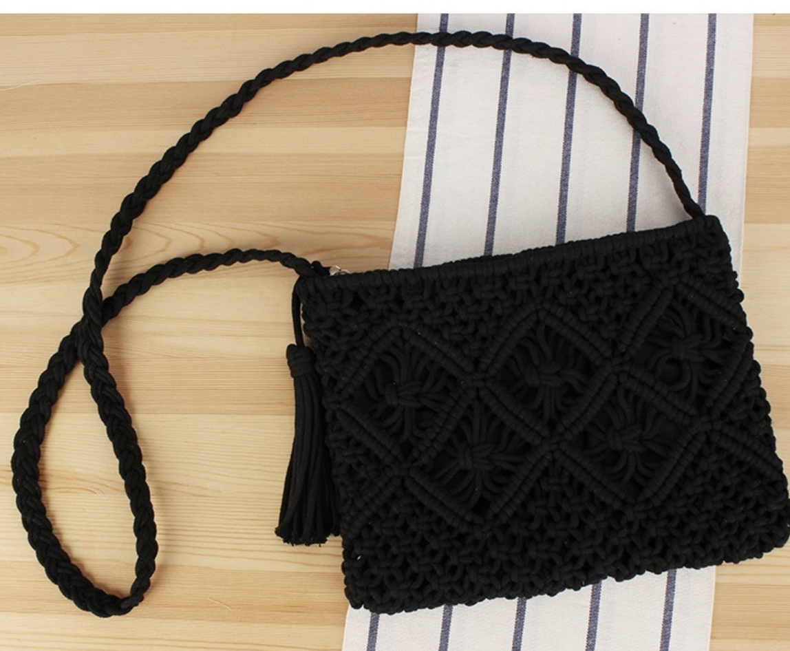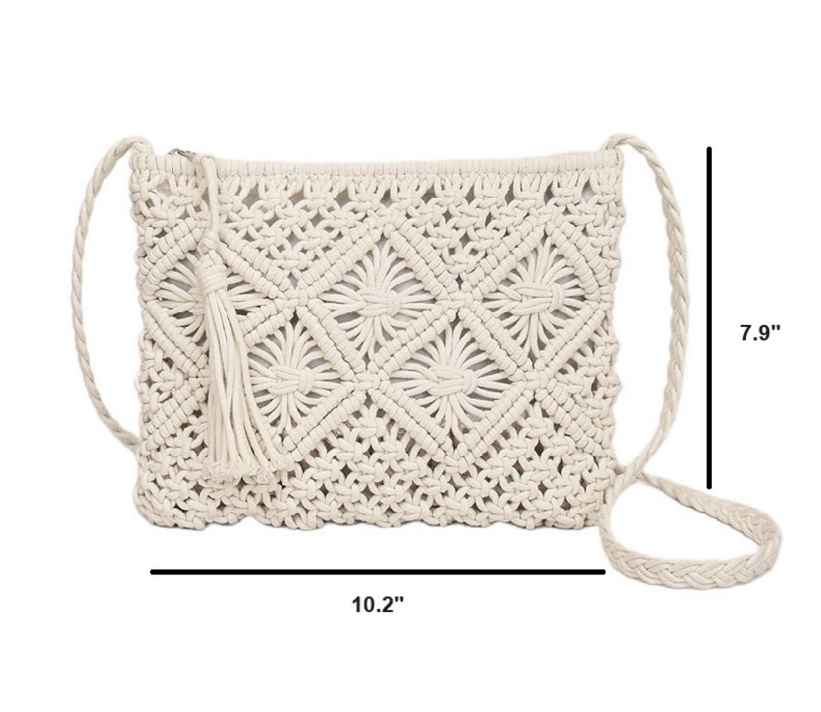 Hand Woven Bohemian Crochet Cross Body Purse / 3 colors