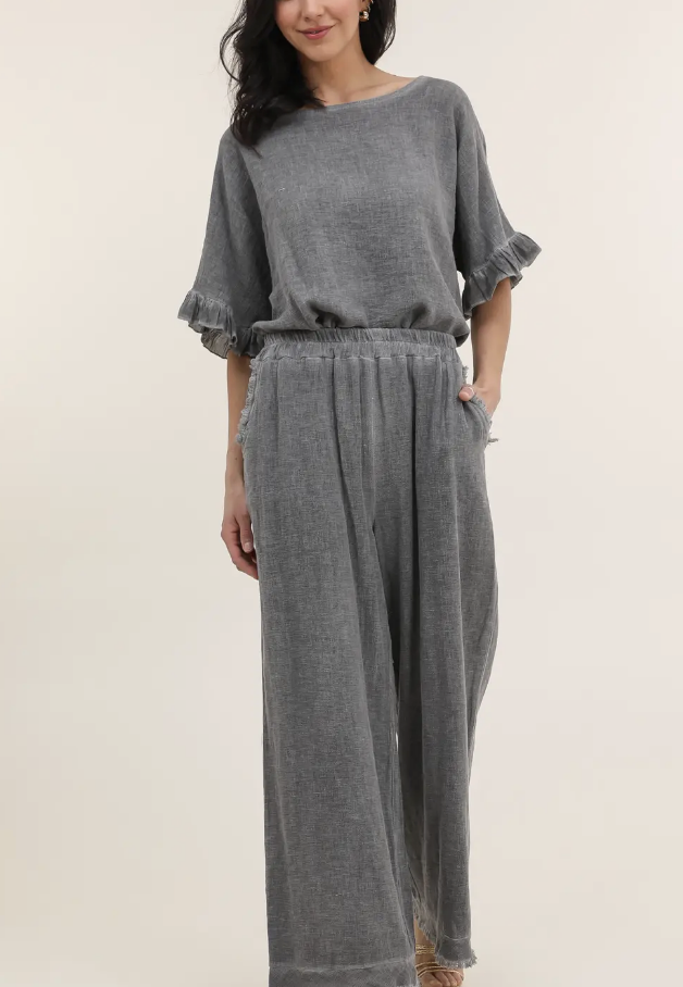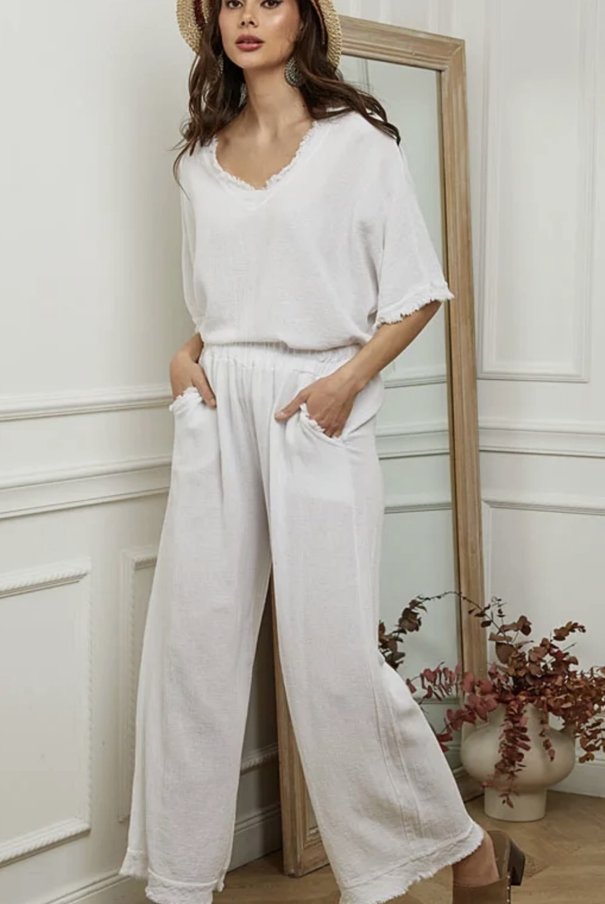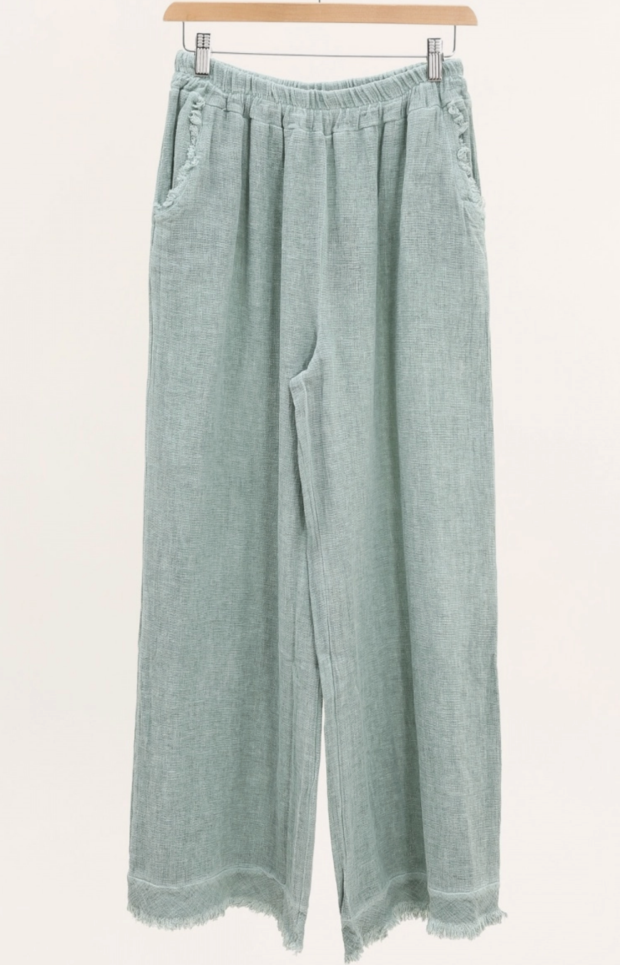 - Frayed Hem Detail Step into effortless elegance with these Italian Linen Trouser Pants. Crafted from breathable, high-quality linen, these trousers offer a relaxed yet polished fit that’s perfect for warm weather. Featuring a tailored silhouette and versatile design, they’re ideal for everything from casual outings to dressier occasions. Available in seven stunning colors, these trousers are a must-have wardrobe staple for those who value comfort without compromising style.