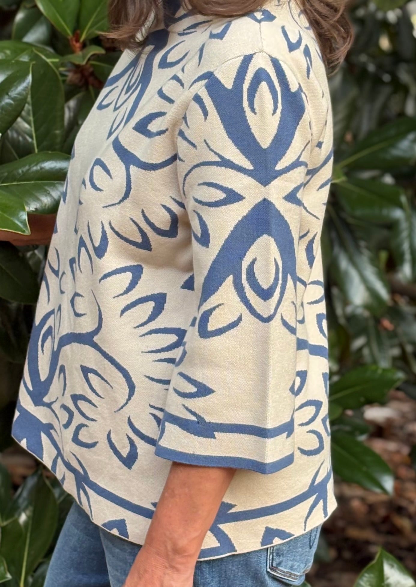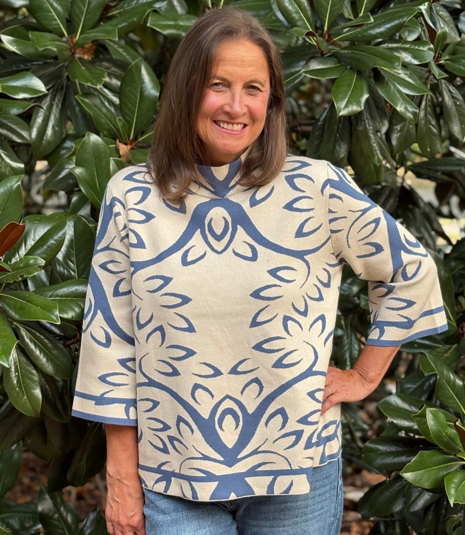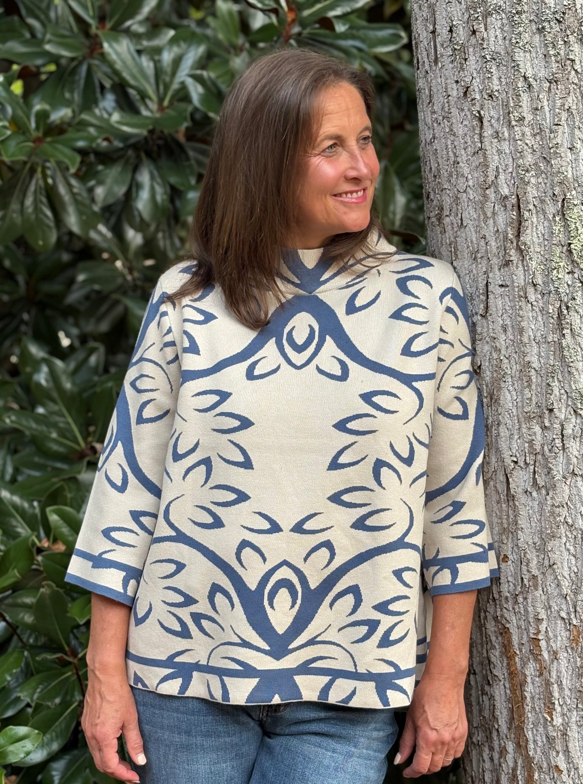 Make a statement in the Jacquard Knit Mock Neck Sweater, where timeless comfort meets bold design. Featuring an intricate jacquard pattern and a modern mock neckline, this sweater is the perfect blend of cozy and chic. Its relaxed silhouette and midweight knit make it a versatile piece for both casual outings and elevated everyday style.