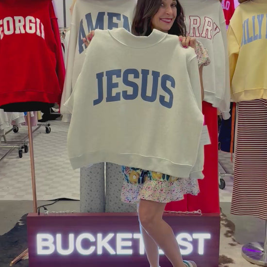 "Jesus" & "God is Good" Reversible Mockneck Sweatshirt