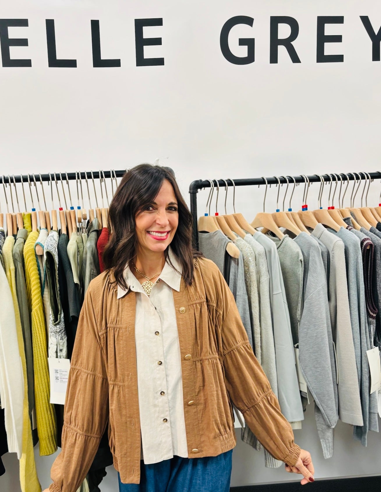 Our Camel Button-Front Jacket is the perfect mix of structure and softness — designed to elevate any look with ease. The crew neckline features delicate gathered detailing that adds a feminine touch, while the polished button front brings a timeless, refined feel. Long sleeves with subtle ruching create gentle texture, and the elastic hem gives the silhouette a flattering, blouson shape.