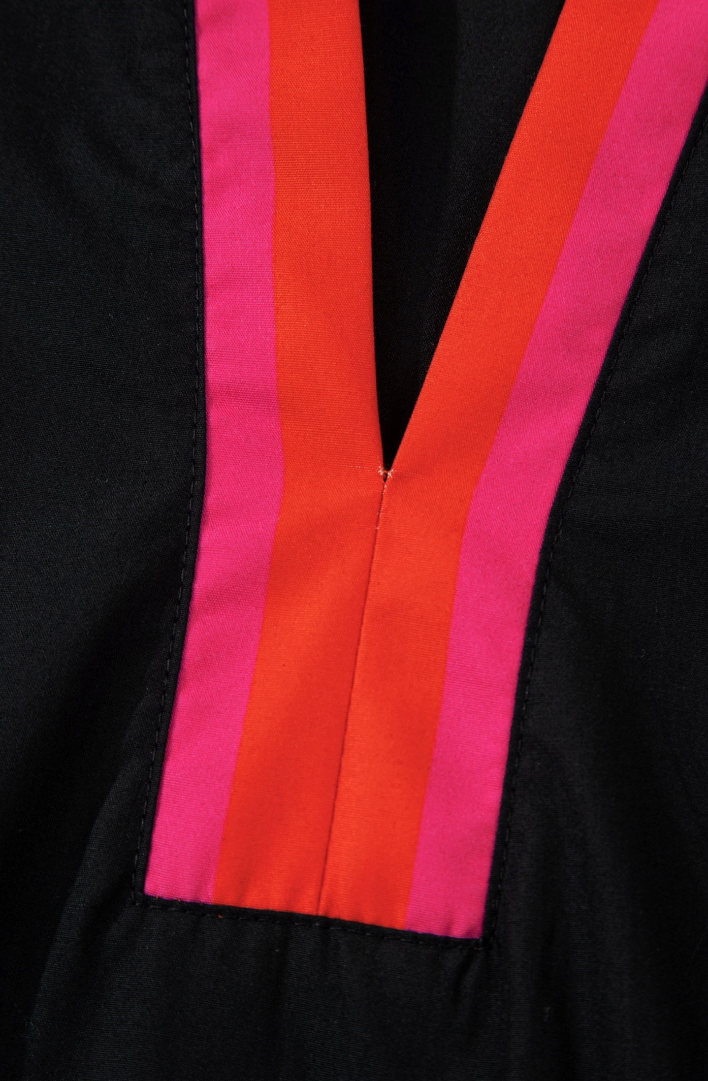 Ruffle Neck Black Striped Trim Ruffle Split Neck Blouse
