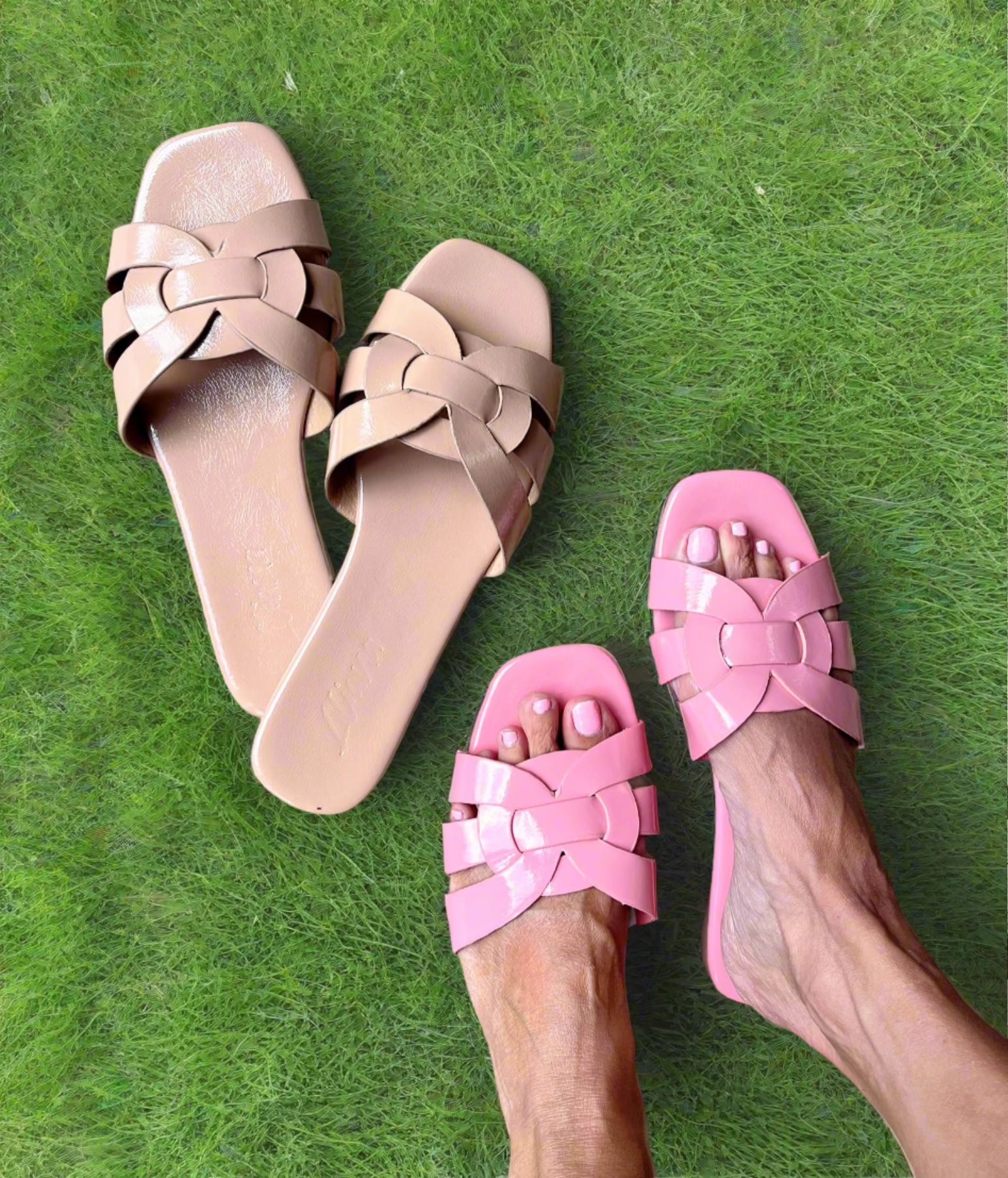 Step out in style this summer with our Nude Summer Patent Flats. These chic flats offer a sleek nude tone that pairs perfectly with any outfit. Say hello to comfort and fashion with these must-have summer essentials!