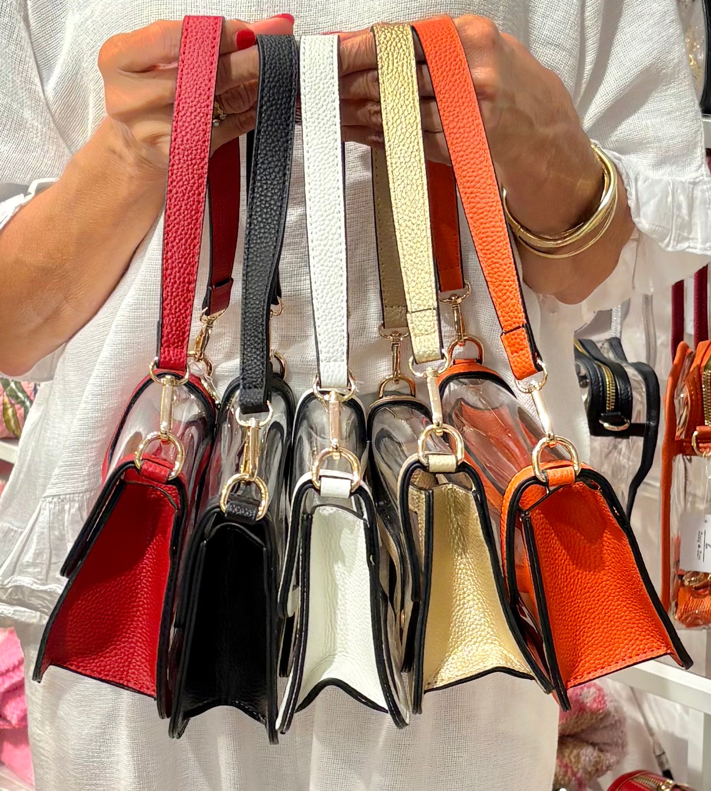 Cheer in style and stay stadium-compliant with these sleek Game Day Stadium Clear Envelope Shoulder Bags. Designed with a clear, durable envelope-style body and an adjustable shoulder strap, these bags offer easy access to your essentials while keeping everything visible for quick security checks. Perfectly sized for tickets, phone, wallet, and more, they combine practicality with a modern, sporty look—making them your go-to accessory for tailgates, games, and all your game day adventures.
