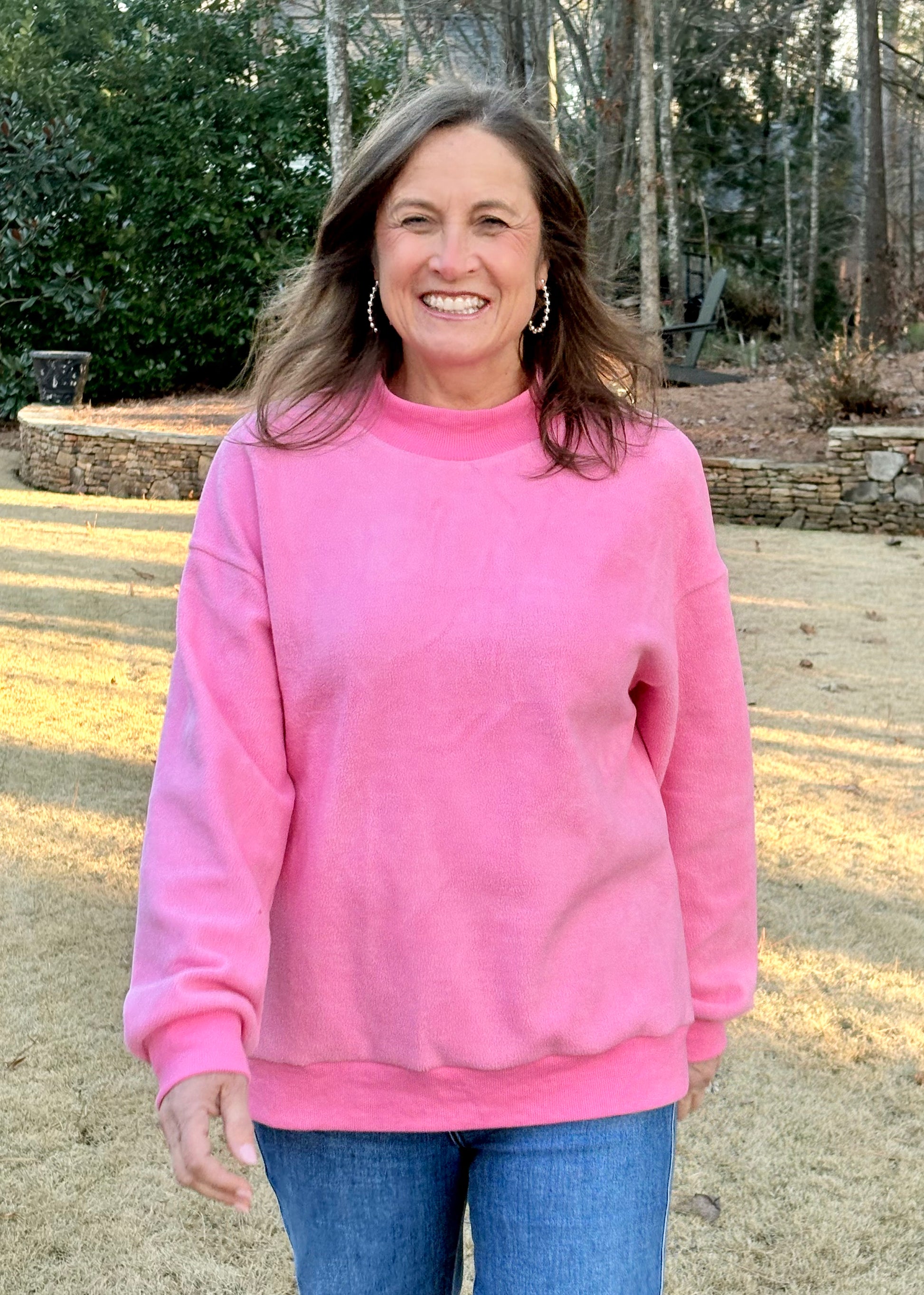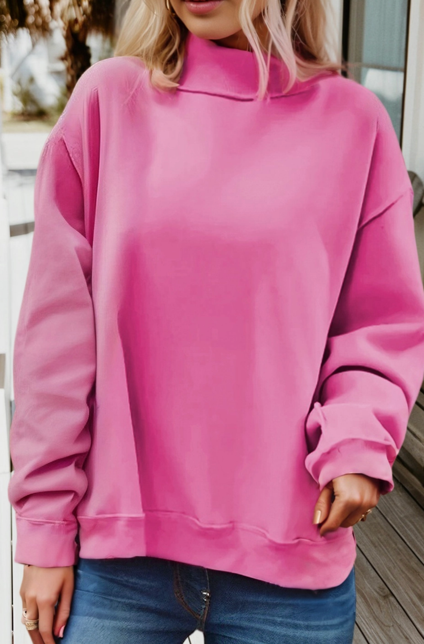 This oversized mock neck sweatshirt is the perfect blend of comfort and versatility. Designed with a fully reversible look and a relaxed drop-shoulder fit, it delivers effortless style with a cozy, modern feel—perfect for everyday wear.