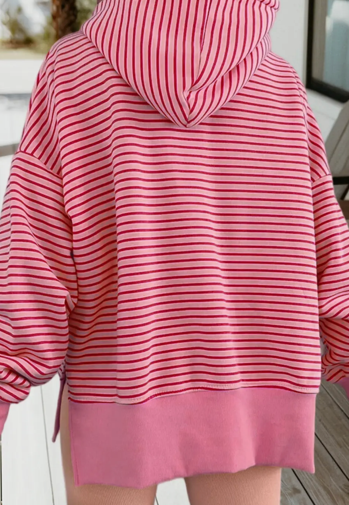 Pink Stripe Thumbhole Loose Fit Hoodie