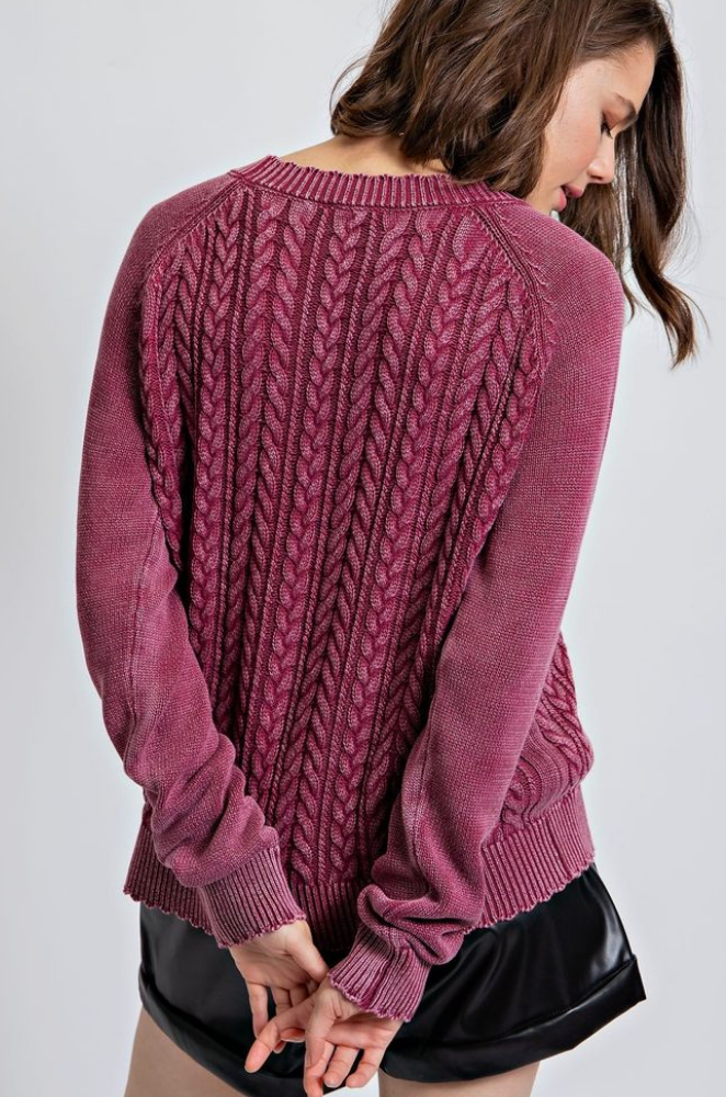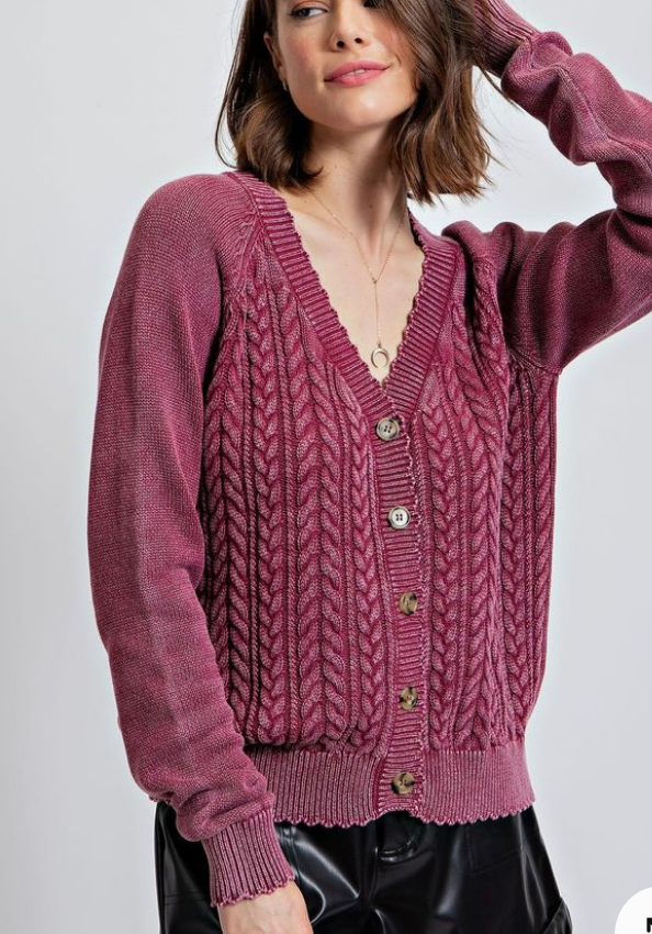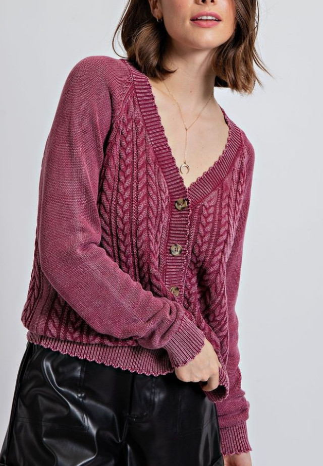 Rasberry Washed Cable Knit Cardigan