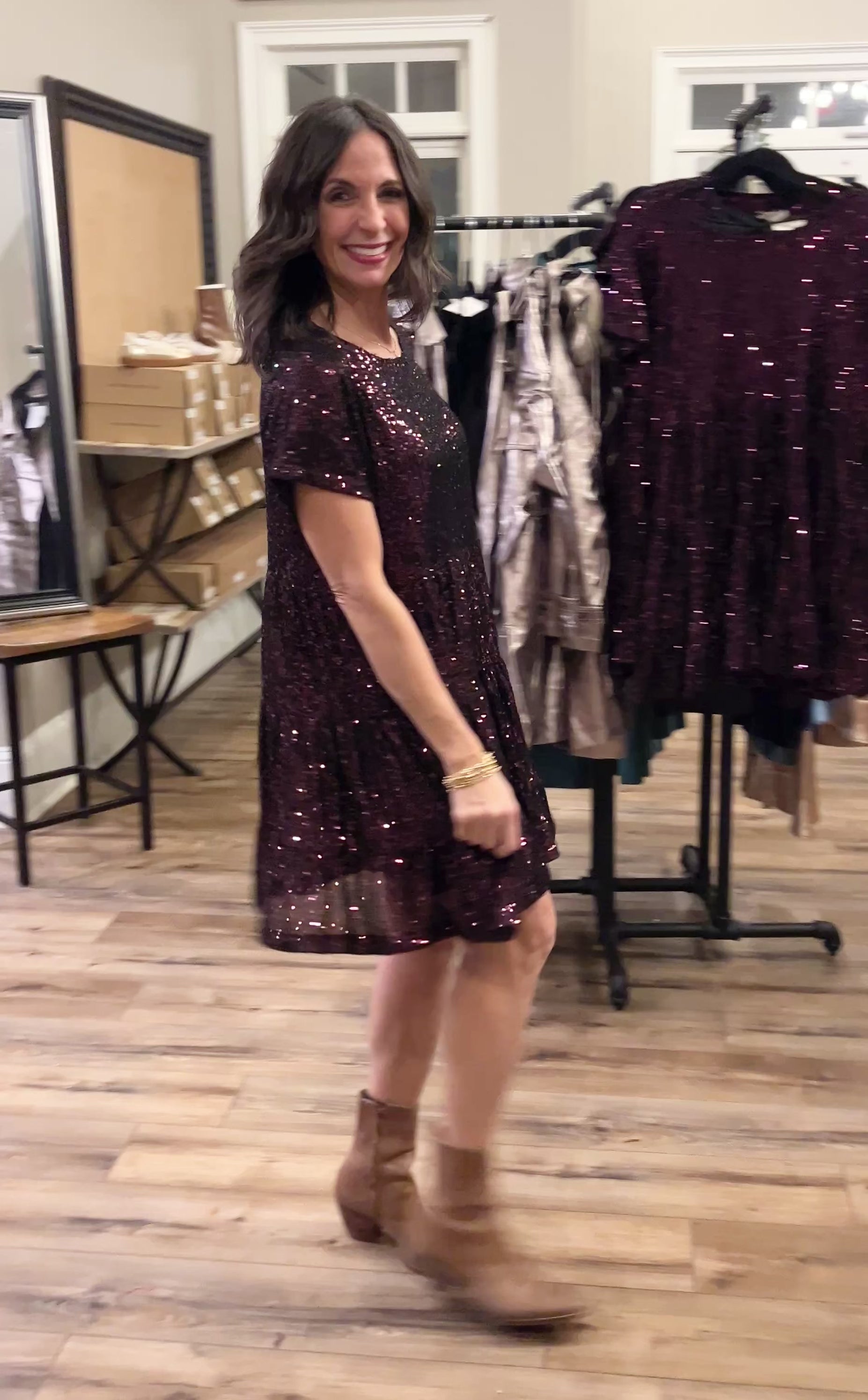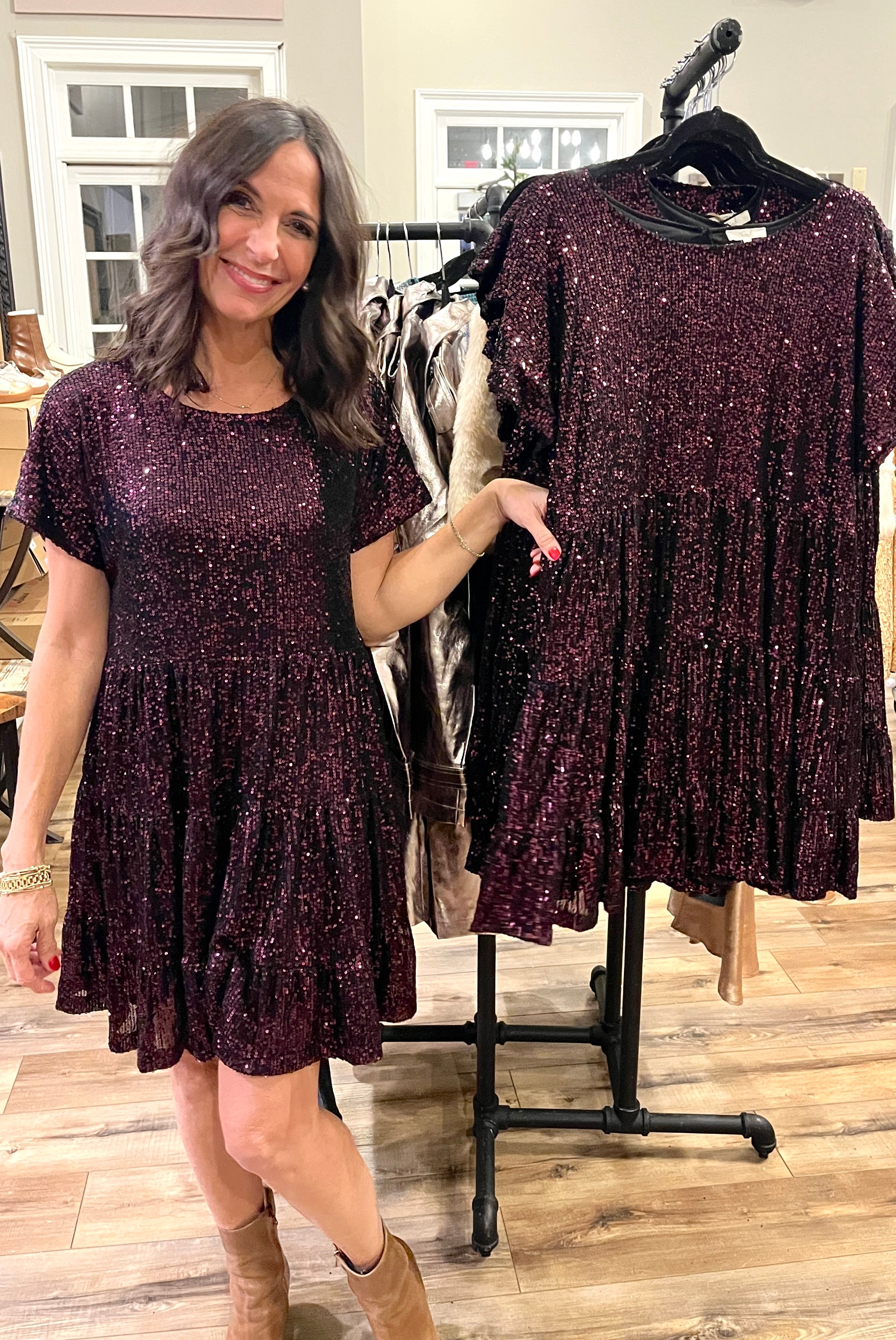 Sequin Tiered Swing Dress