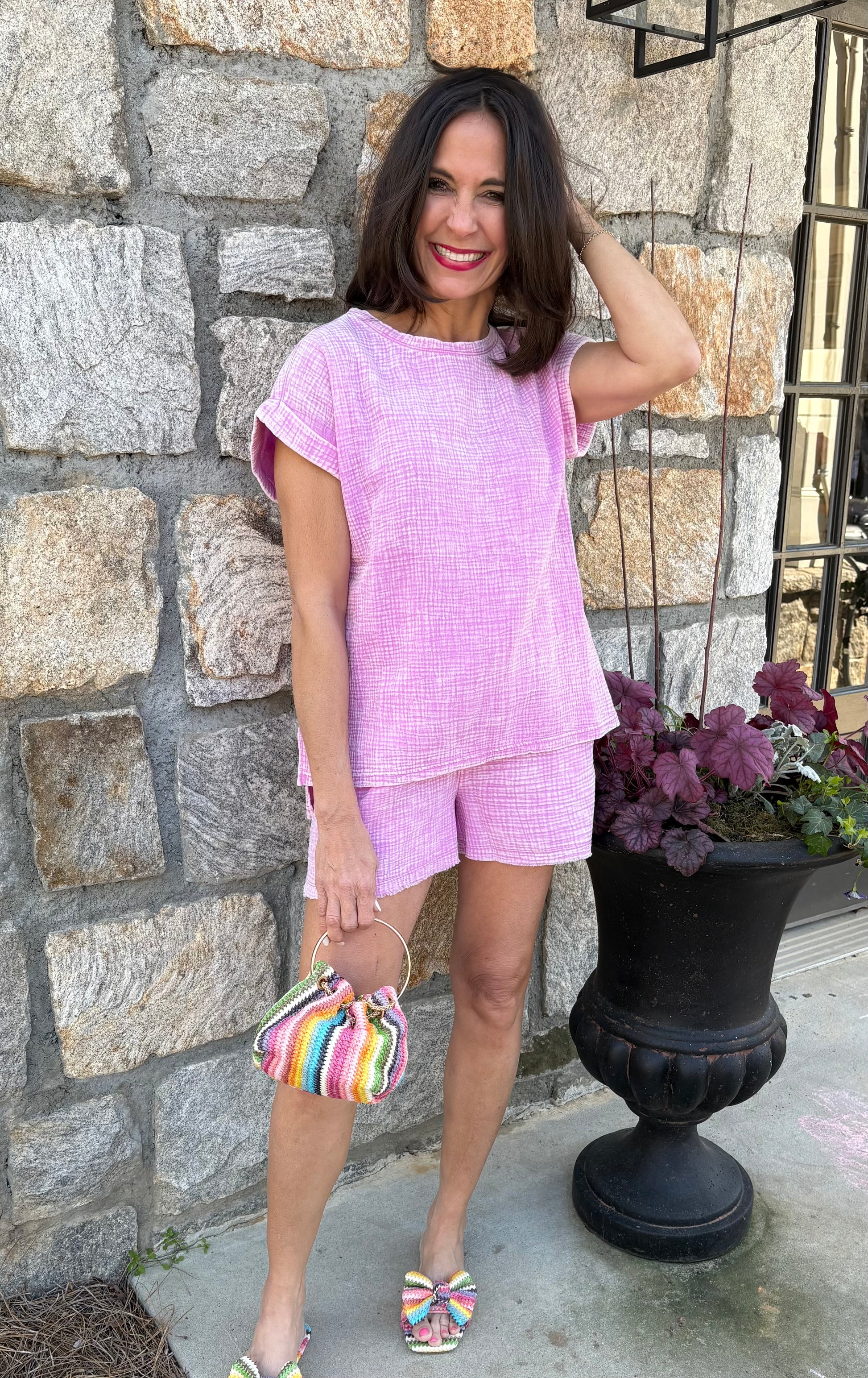 Washed Double Gauze Frayed Hem Drawstring Shorts /3 colors